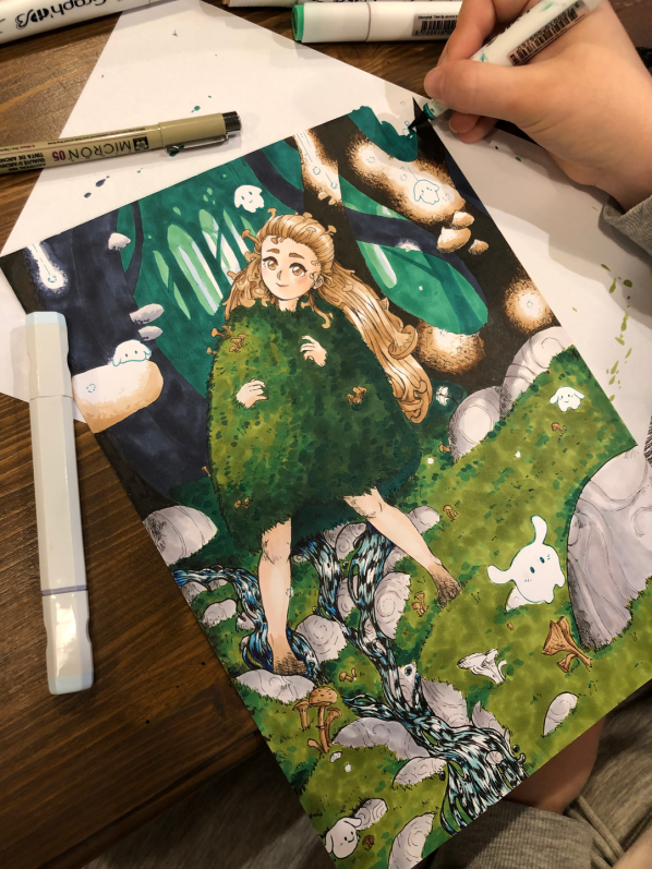 Tout le matériel professionnel est fourni. Papier, crayons, encre et fine liners japonais bien sur, mais aussi 2 000 feutres à alcool pour les illustrations en couleur.